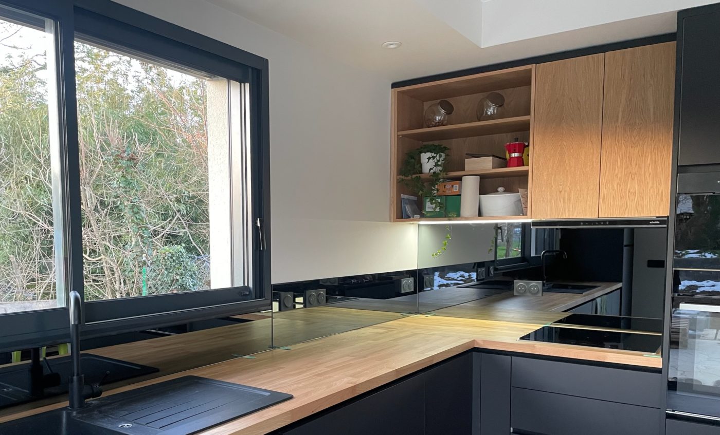 Facilement nettoyable c’est un matériau durable, sain et inorganique. Contrairement aux carrelages traditionnels, le verre se présente sous forme de grands panneaux.